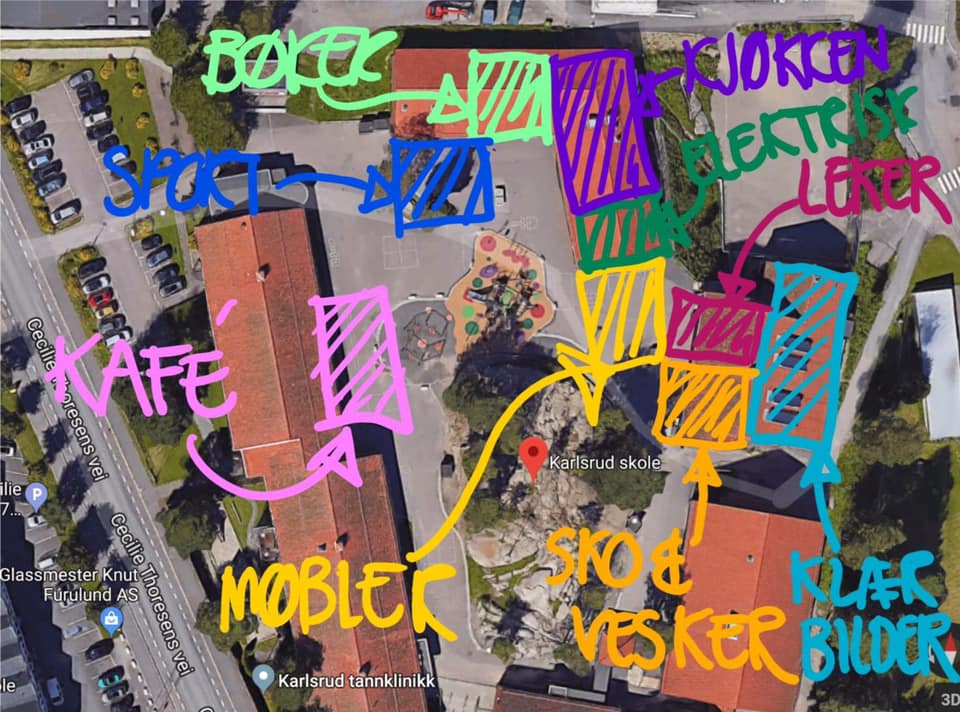 Om du vil levere lopper til oss selv kan du komme til skolegården på Karlsrud Skole fredag 25. april mellom kl 18 og 21. Der vil det være tilrettelagt med rundkjøring og merking for «drop-off» punkter, så det skal være enkelt å kunne levere til oss.